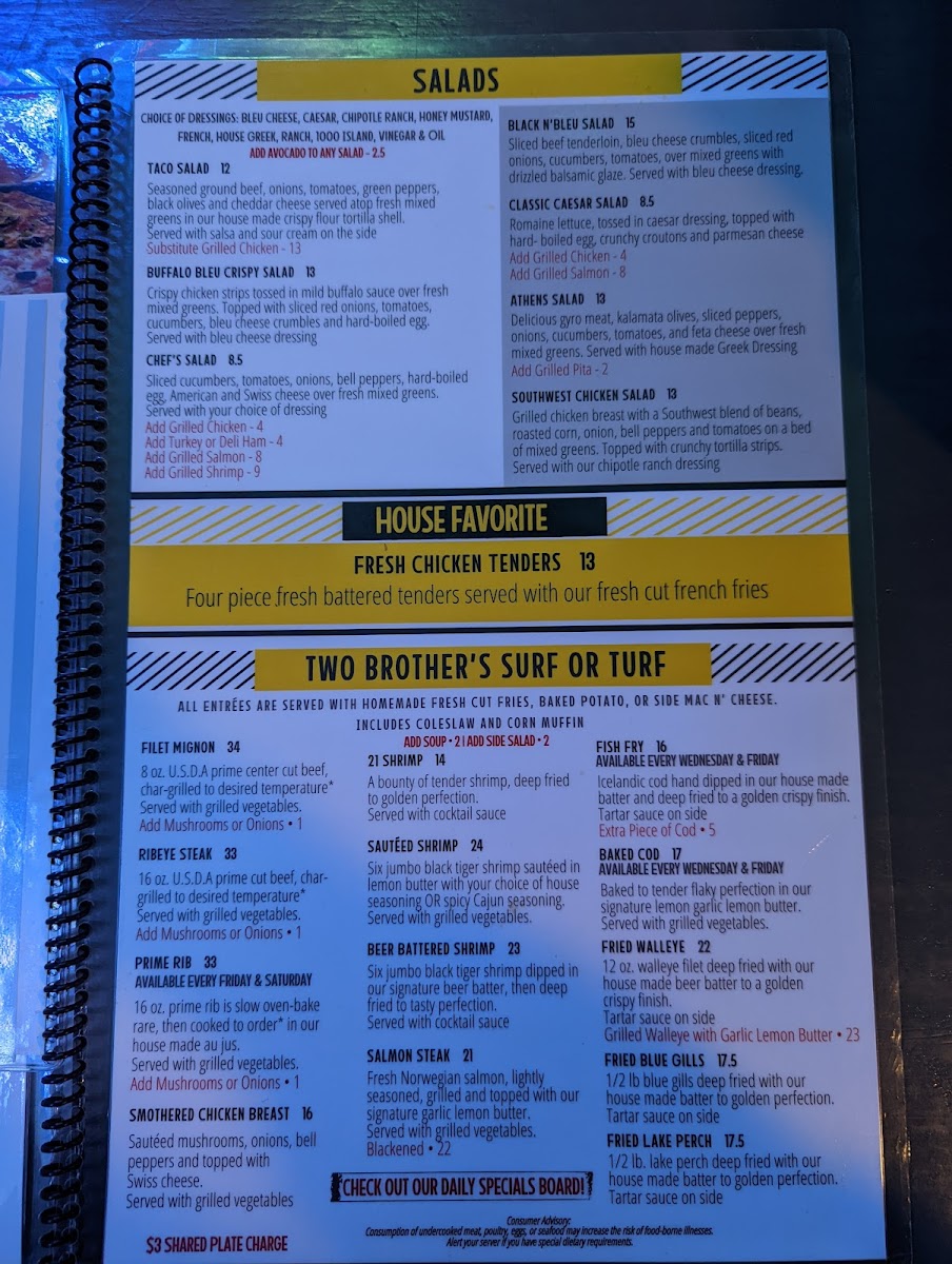 2 Brothers Pub and Grill Menu